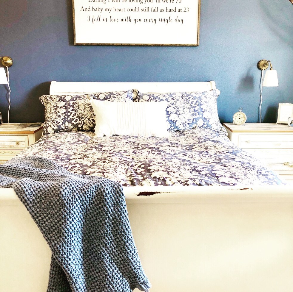 I’ve been working on finishing our master bedroom. For some reason this is the space that I neglect the most. The rest of the house seems to be a priority and our bedroom comes last. I don’t know why. Lol. I’ve painted the sleigh bed and an accent wall, ordered the custom sign from #qbhome and redesigned the night stands. It’s a work in progress. 🙂 Slowly but surely….