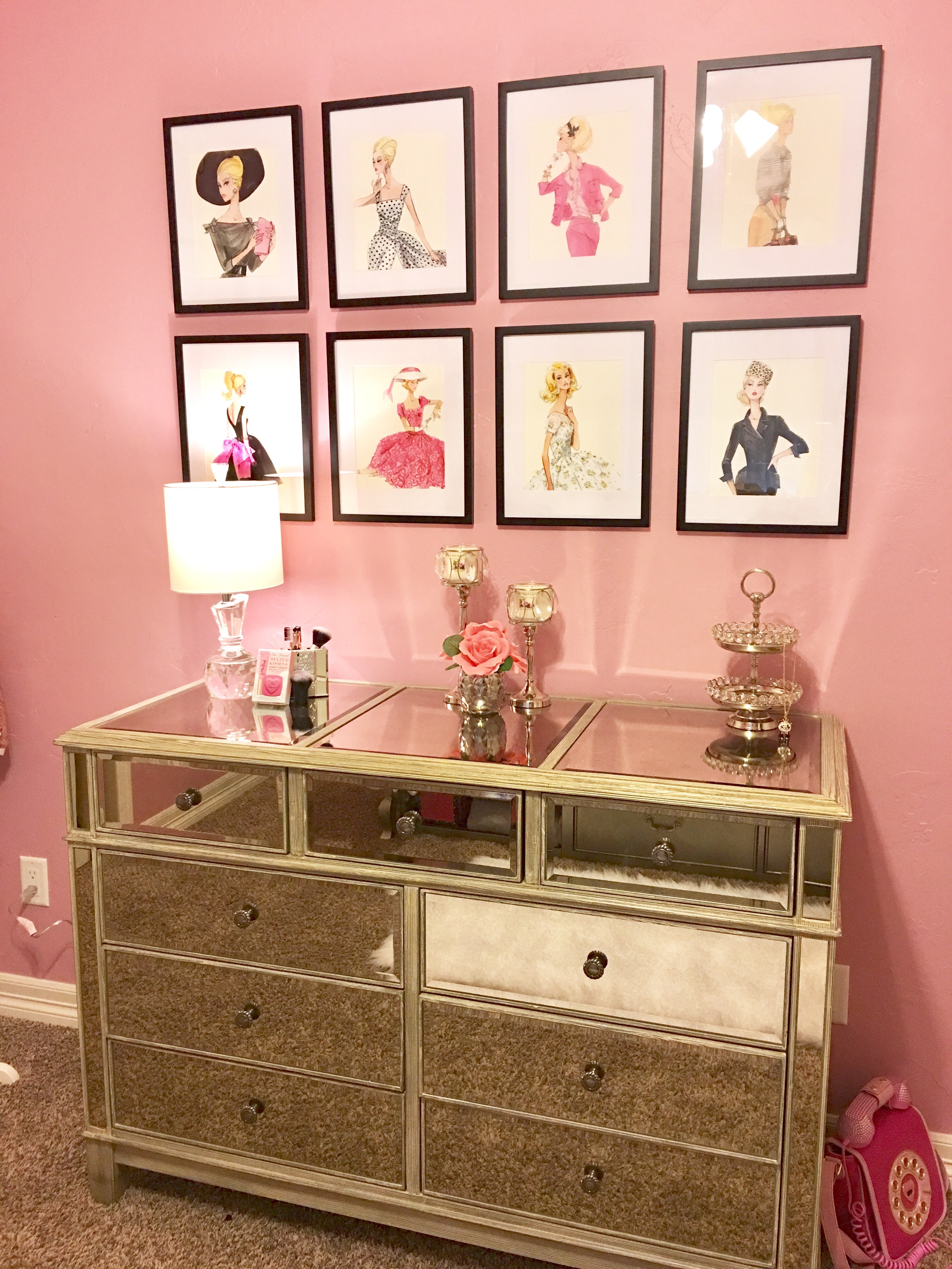 Vintage Barbie Sketches by Robert Best. I located an old Barbie calendar And framed the art! 🙂 I love how this little girl's room is starting to come alive with a "Glam Fashion" theme.