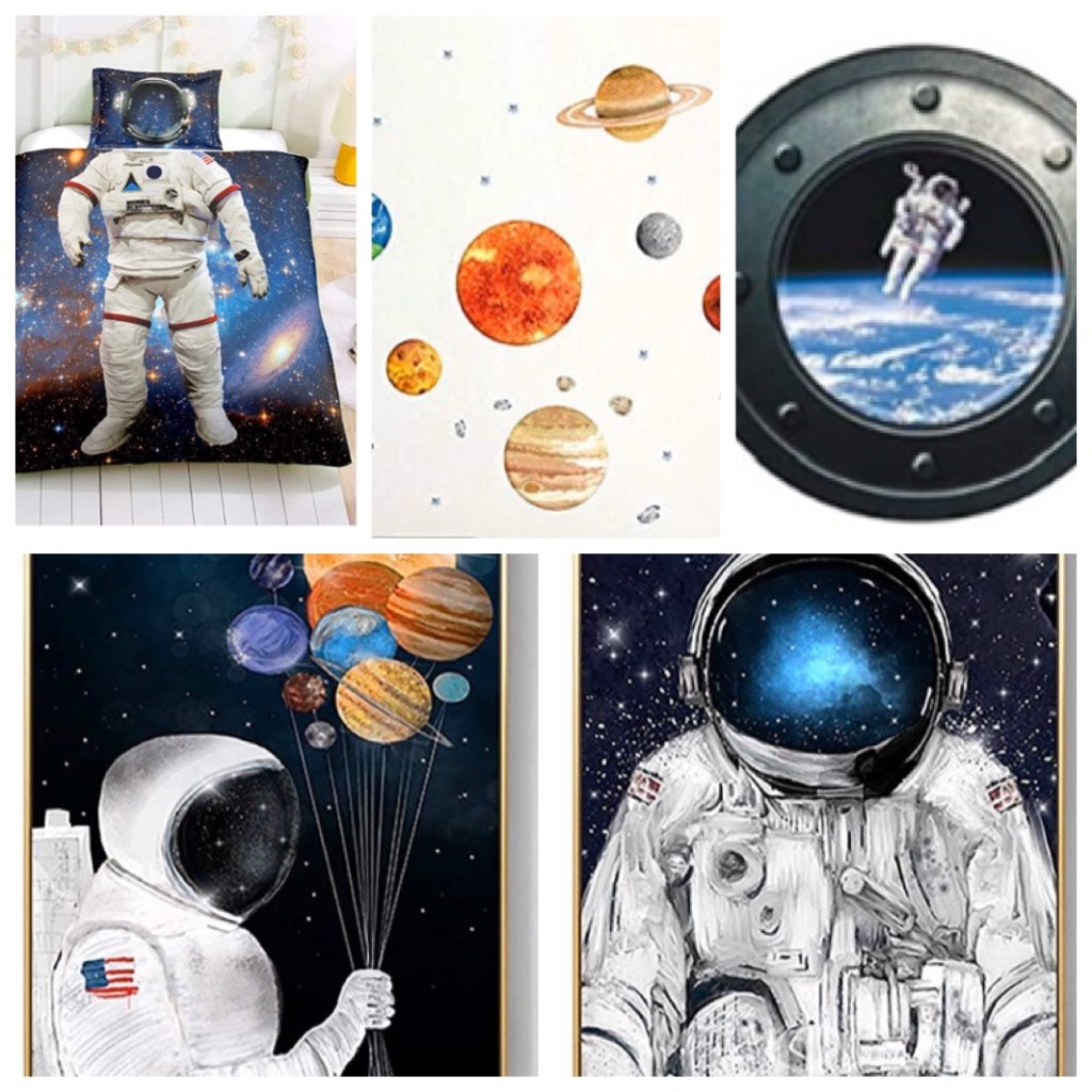 What does a designer do when they are staying home during COVID-19 and has cabin fever (already) ? Give the kid’s rooms a complete makeover! This astronaut/outer space theme is going to be my 9 year old’s new room. Everything in the photo was purchased on Amazon Home. We are going to start painting tomorrow. 🖌 🎨 Watch for the before and after photos coming soon.