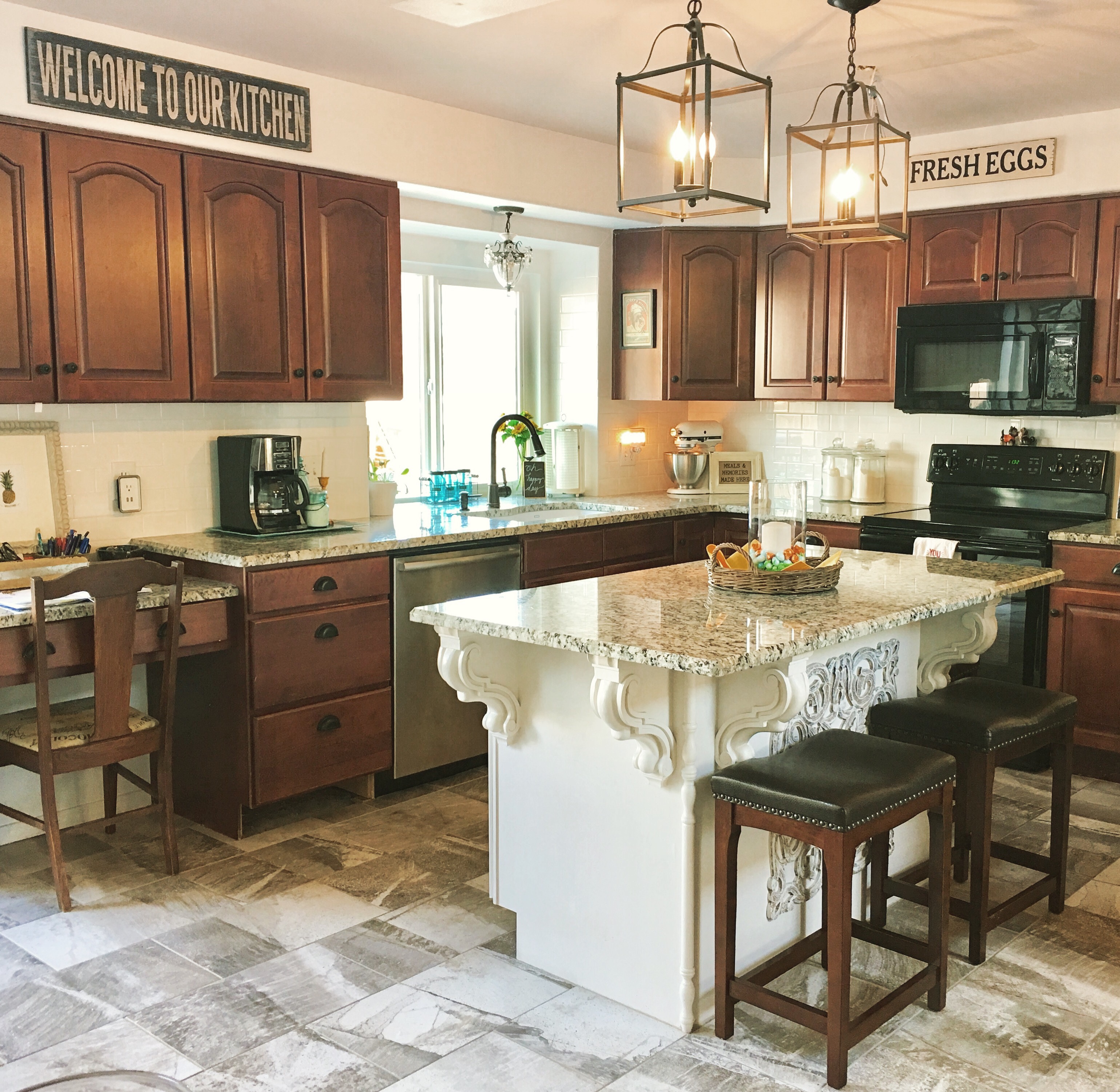 The “Before” photo! :). We are about to start refinishing the cabinets in our kitchen. It’s come a long way already; custom island, new granite countertops, Blanca sink, new appliances, new tile flooring, new light fixtures and a new faucet and hardware. Now comes the transformation of the cabinets! I’m excited!! Wish me luck y’all! #kitchenrenovation
