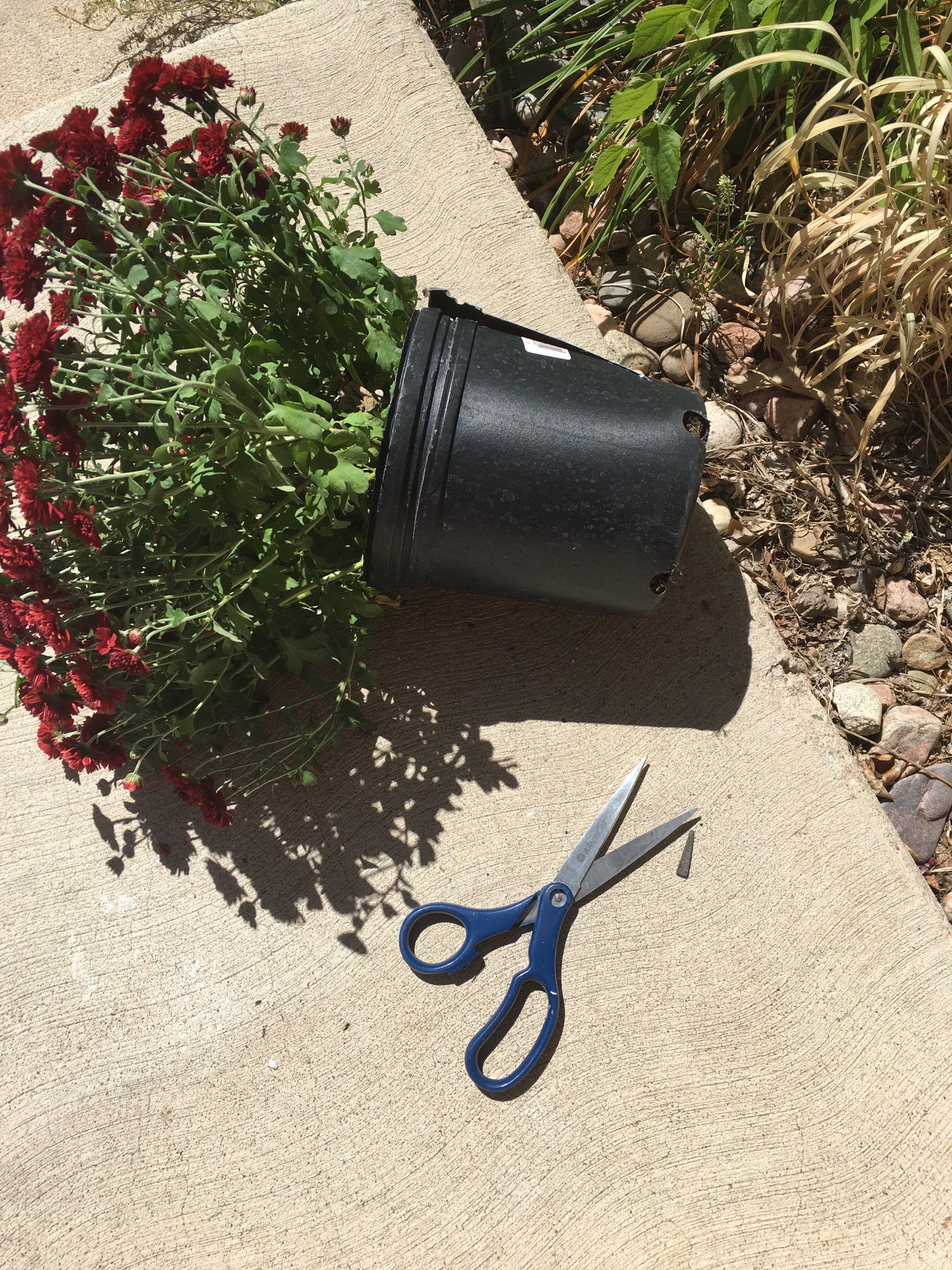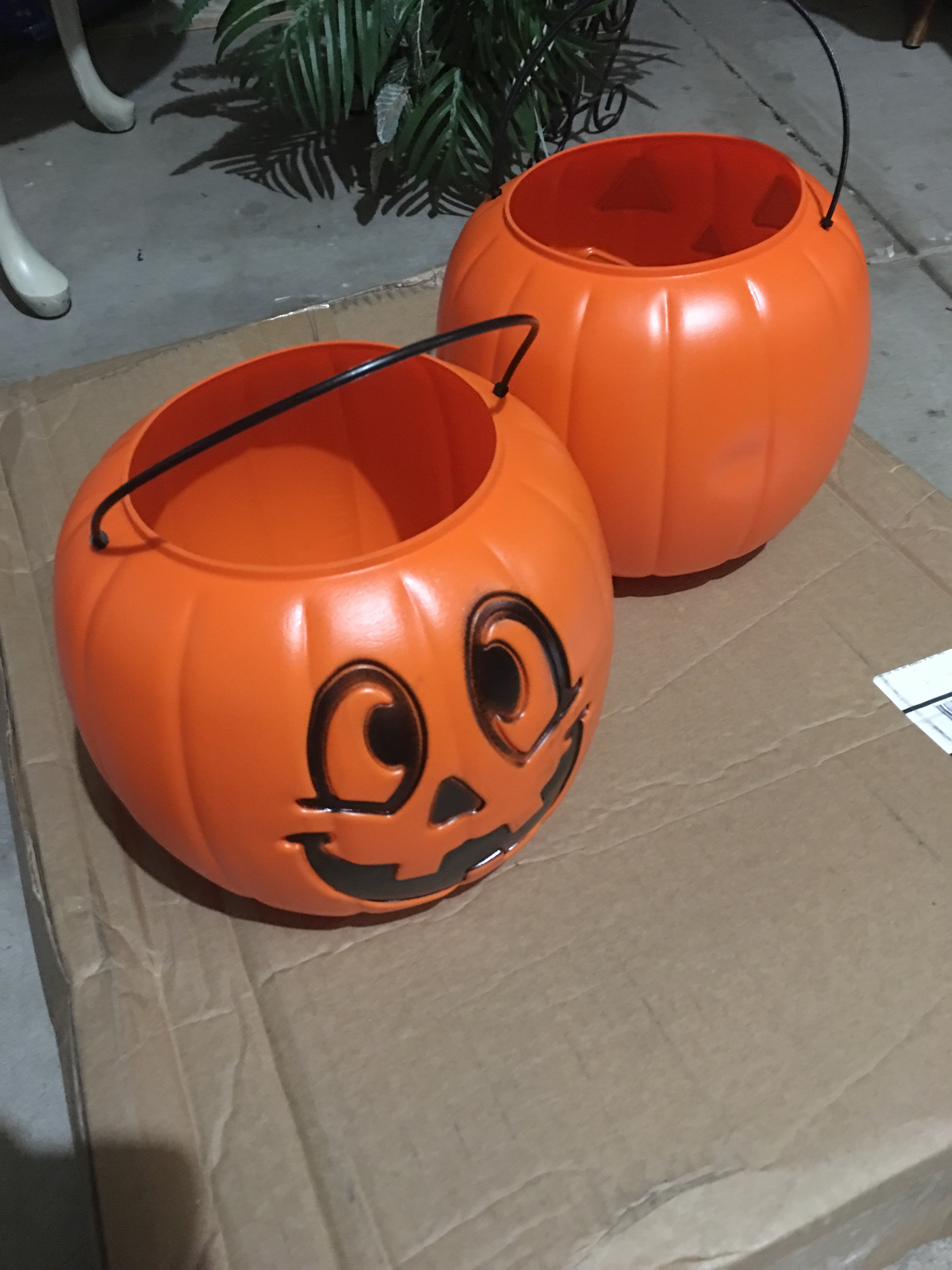 First, I purchased 2 plastic jack-o-lanterns for $1 each. Then I found the Mums that I wanted to use. I found them for $4.95 each.